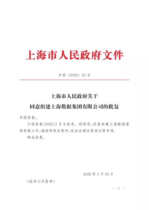 據上海市人民政府網站消息,日前,上海市人民政府批複同意組建上海數據集團有限公司。