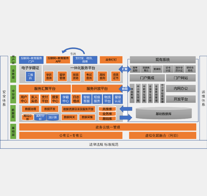 通過建設教育大數據平台,将業務系統應用中産生的(de)數據,通過彙聚、互通、挖掘分析,可(kě)以對業務進行診斷、預警、改進跟蹤,提高(gāo)教育決策水平。